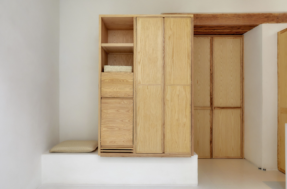 Zaavia participó en el diseño de los cojines para las bancas de las habitaciones. Fueron tejidos a la medida con palma por artesanos de Guerrero.