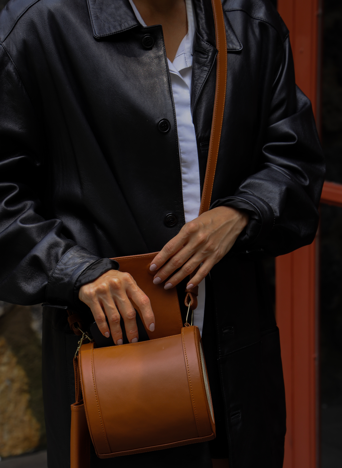 Bolsa cilindro , por su forma es bastante amplio el interior. Monedero incluido para lucir como complemento de Mare o lo puedes intercambiar entre bolsas, tiene bandola para anclar en llavero o en cualquier argolla .