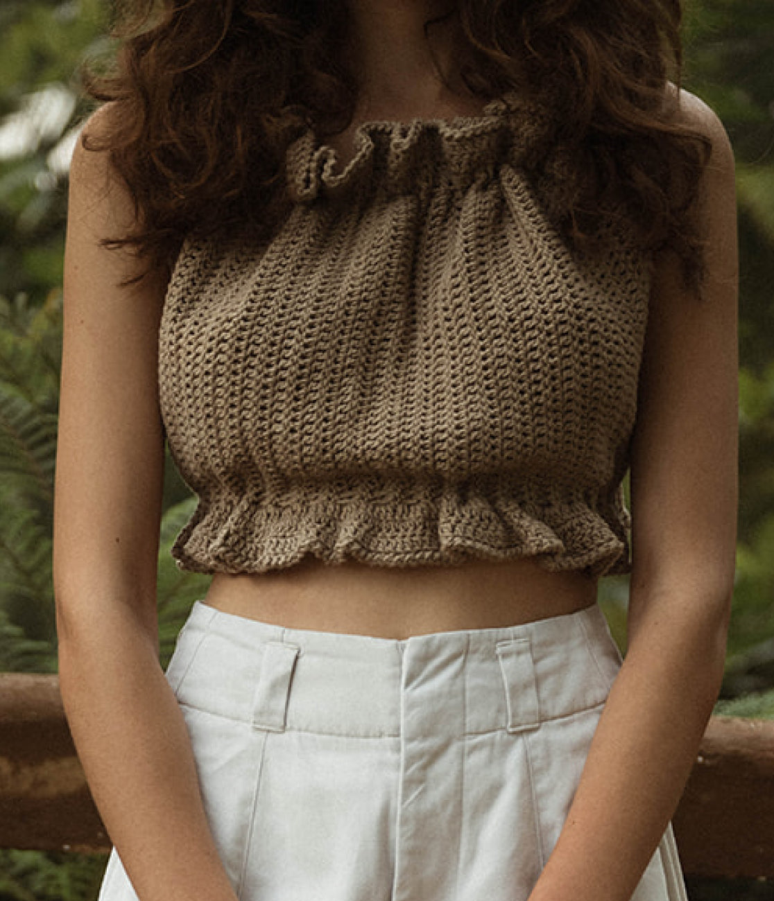 Ruffle handwoven top , it transition easily from day to night and from a beach style  to a city style .