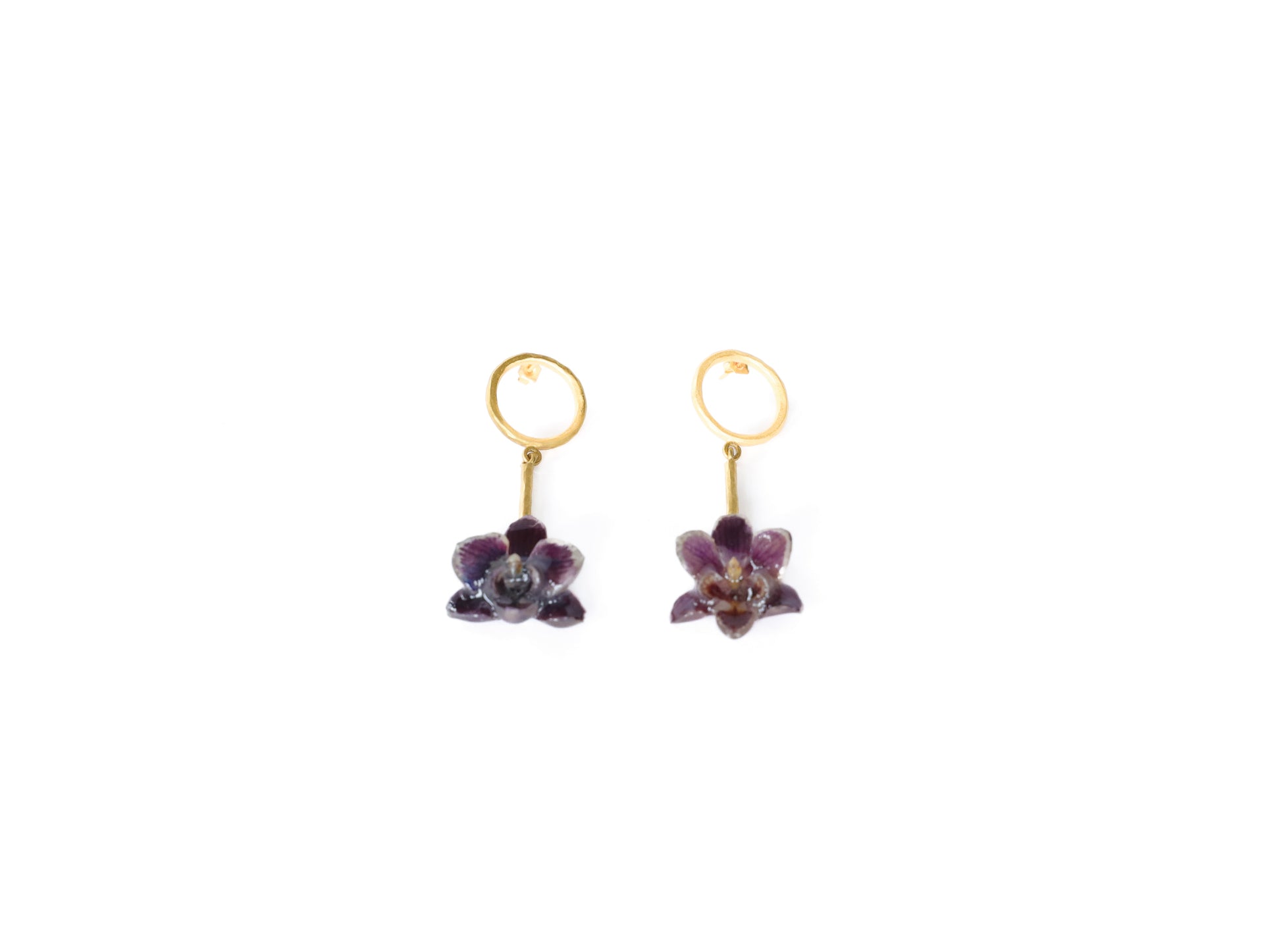 Pendientes hechos a mano, con Orquídeas naturales preservadas en resina.