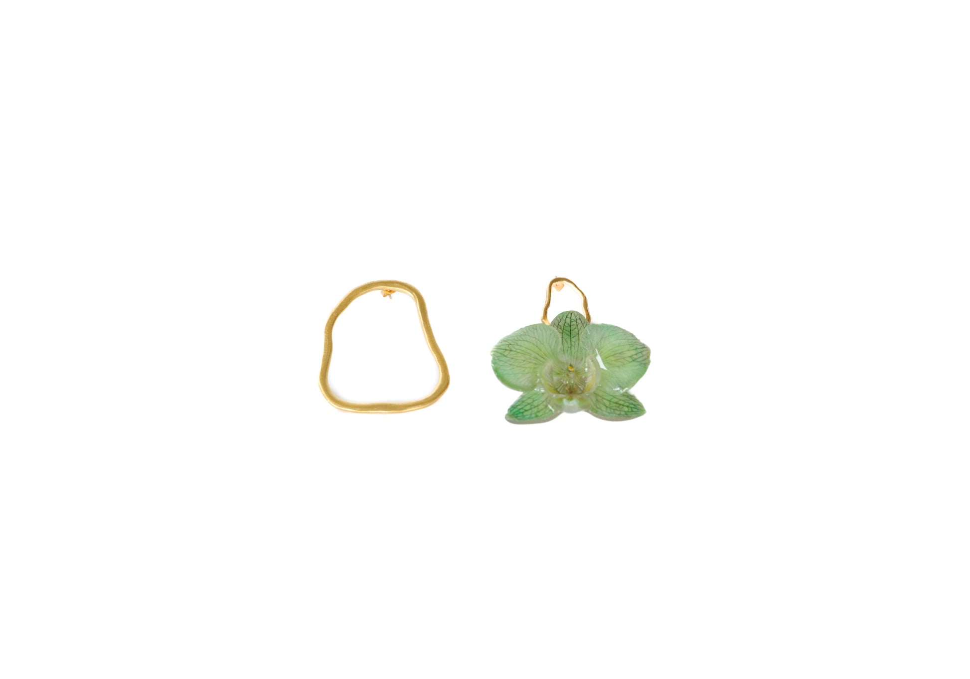 Base de latón con baño de oro. Orquídea natural preservada en resina.